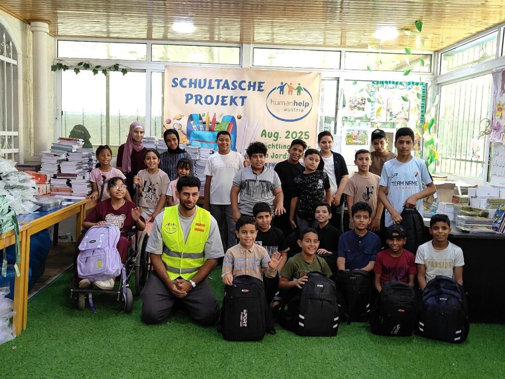Bu yıl da Human Help Austria, büyük bir özveriyle 2025/26 Okul Çantası Projesi’ni başarıyla tamamladı. Hayırsever bağışçılarımızın desteği sayesinde, Bangladeş, Ürdün, mülteci kampları ve Mısır’daki ihtiyaç sahibi birçok çocuğa okul çantaları ve kırtasiye malzemeleri ulaştırabildik.