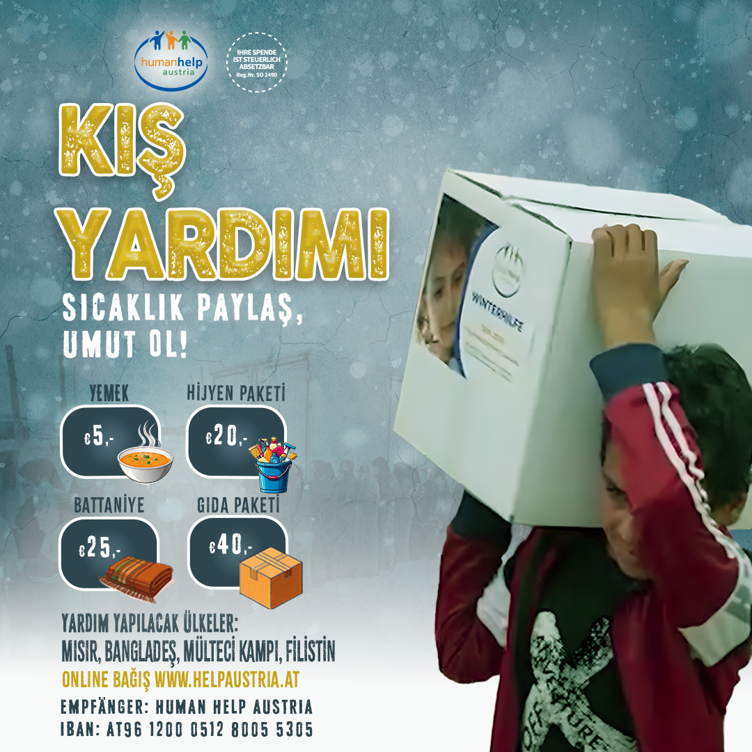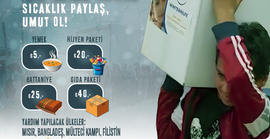 Bu kış muhtaclar için sıcak yemekler, hijyen paketleri, battaniyeler ve gıda paketleri ulaştırıyoruz.